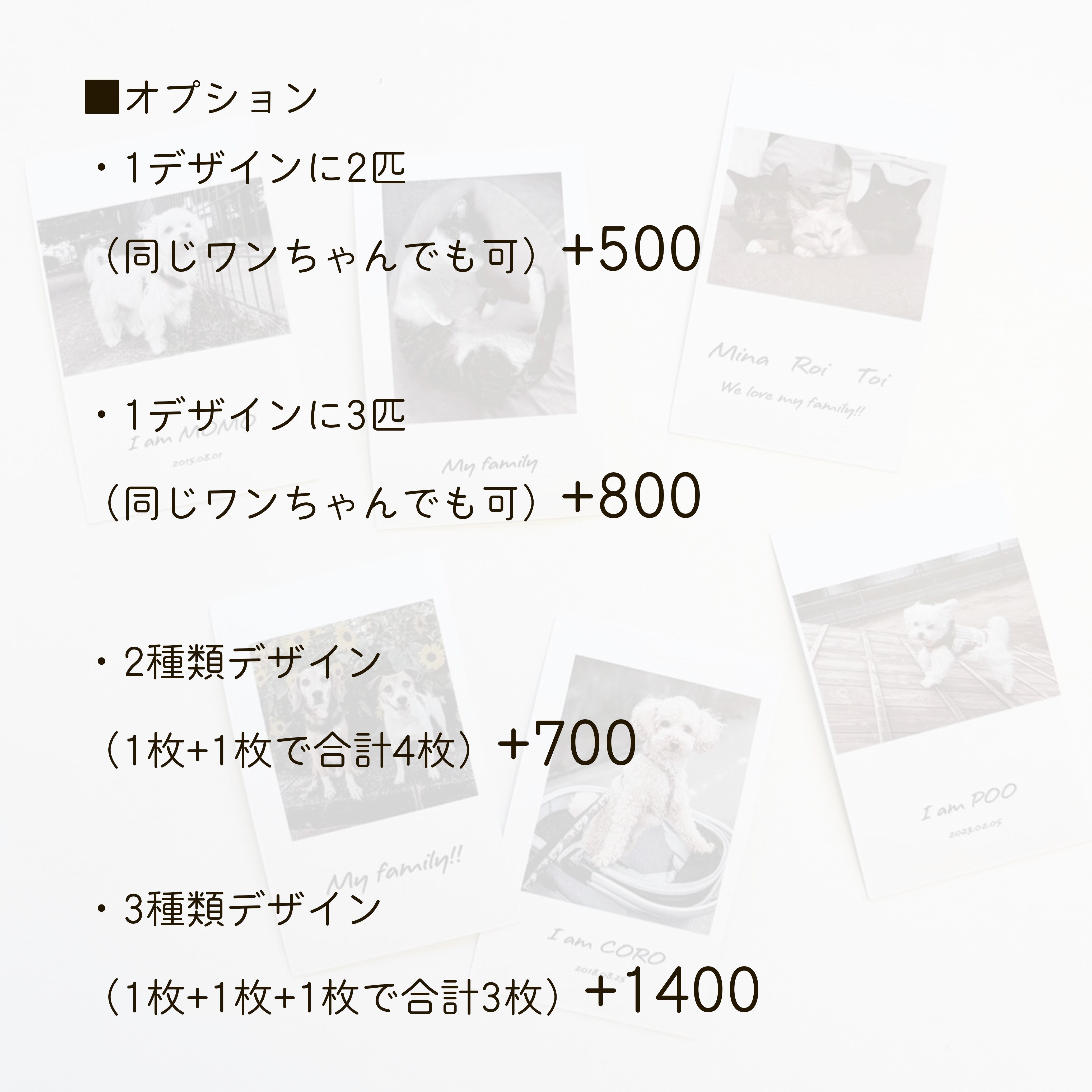 ・1デザインに3匹(同じワンちゃんでも可)+800