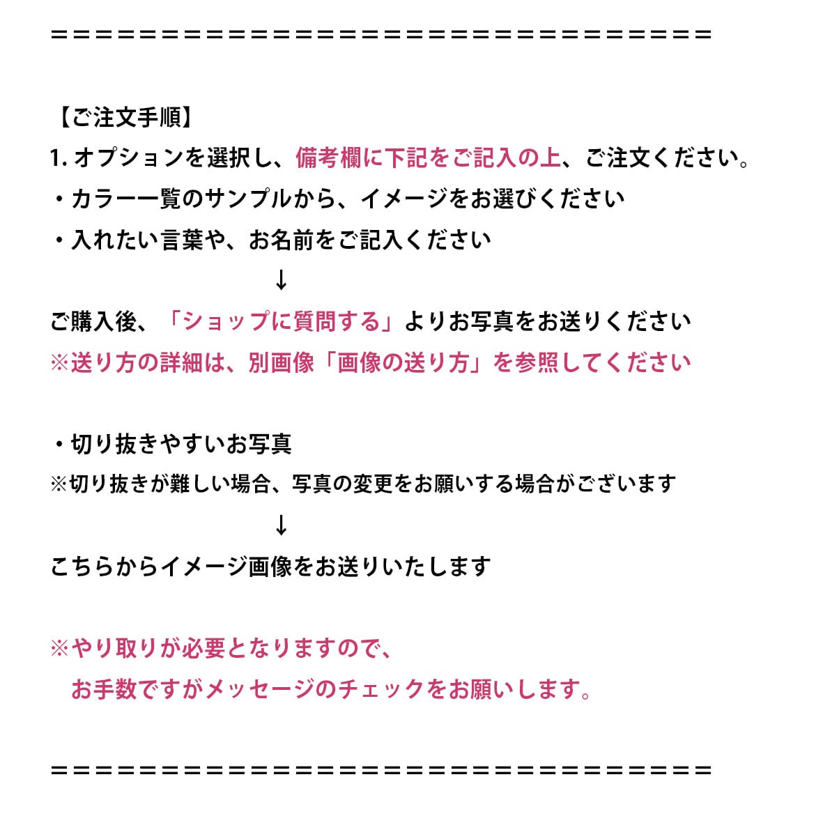購入後、メッセージにてお写真をお送りください