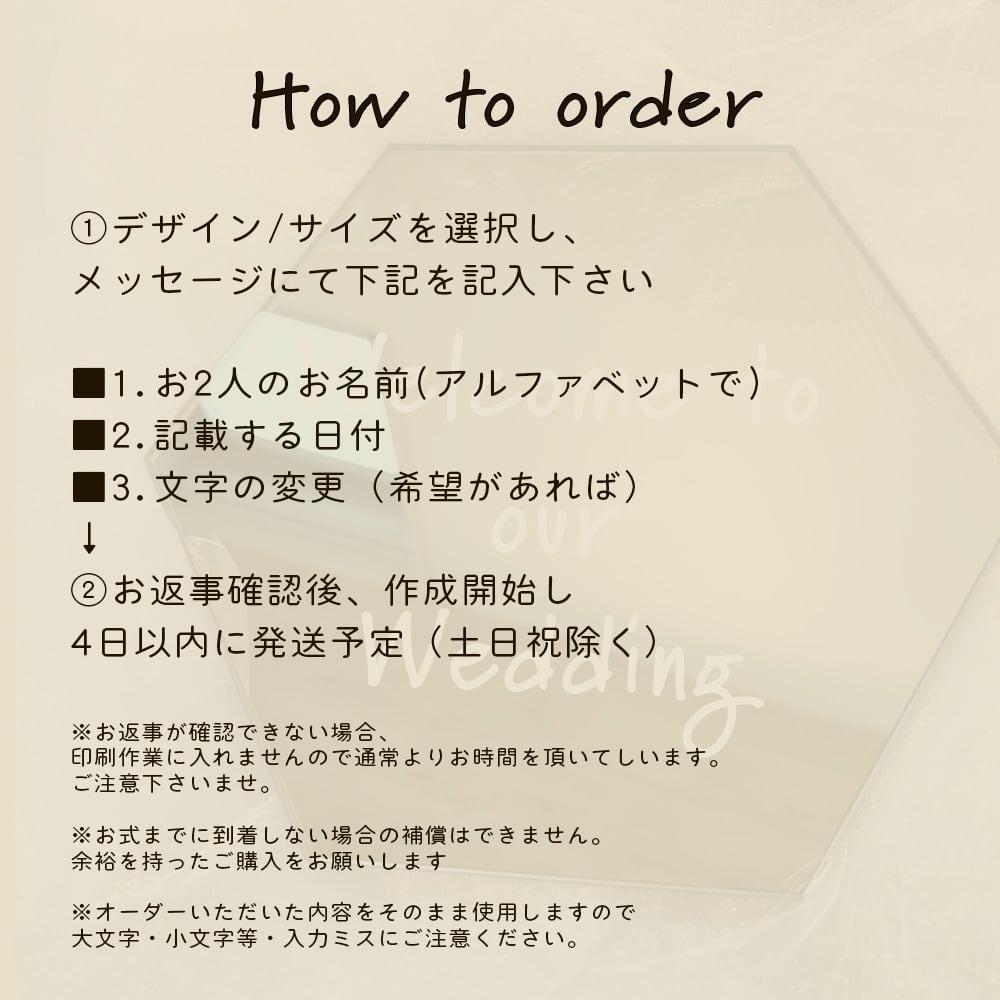 ※お返事が確認できない場合、印刷作業に入れませんので通常よりお時間を頂いてしいます。ご注意下さいませ。