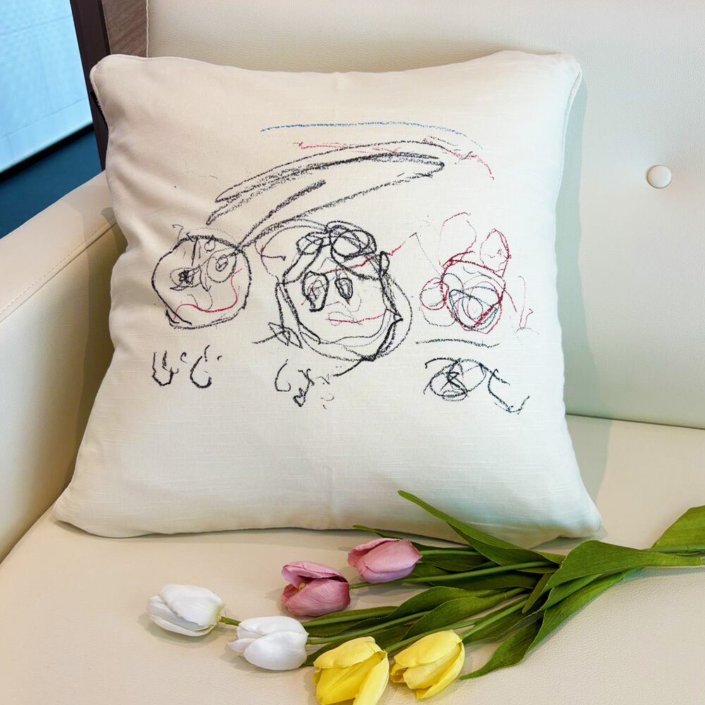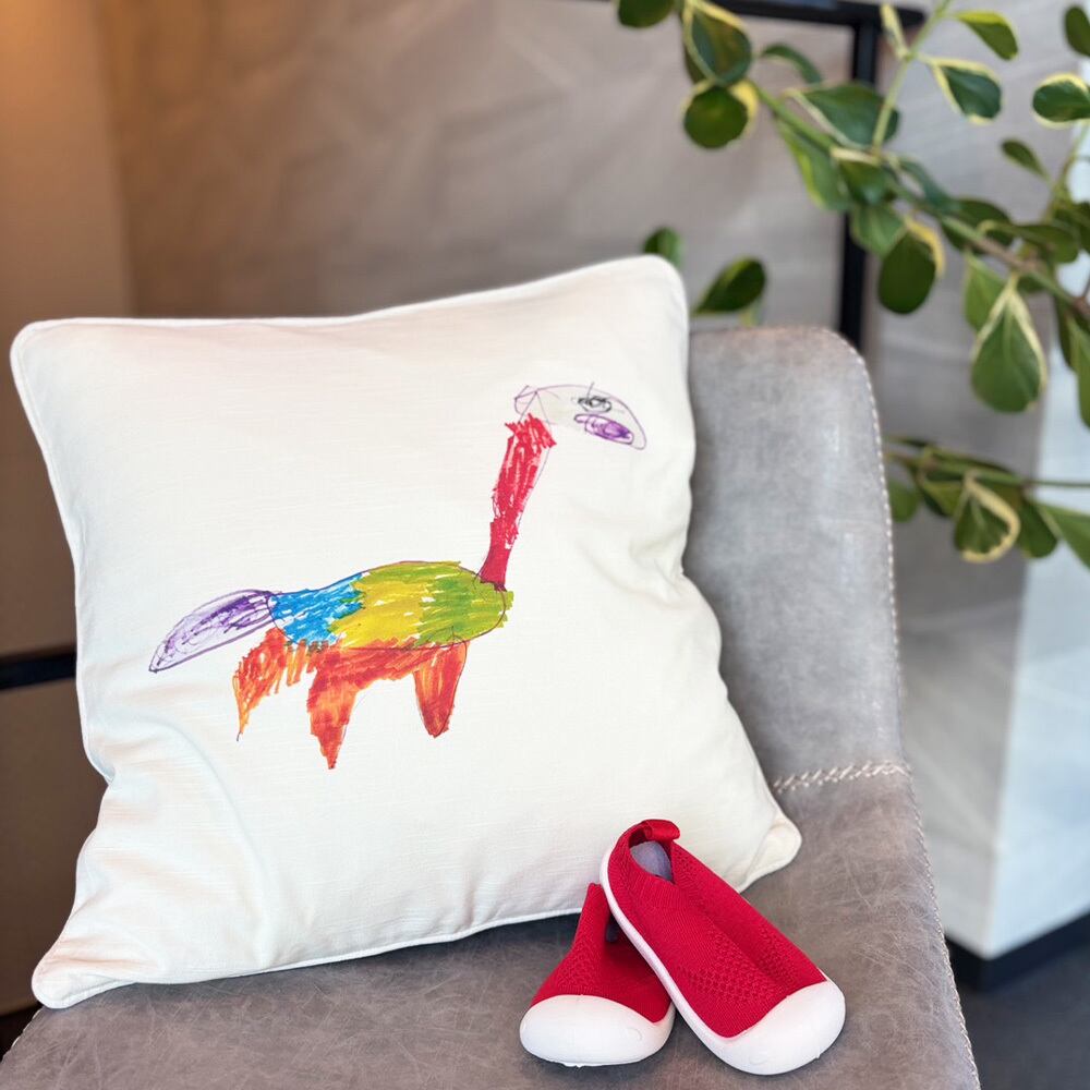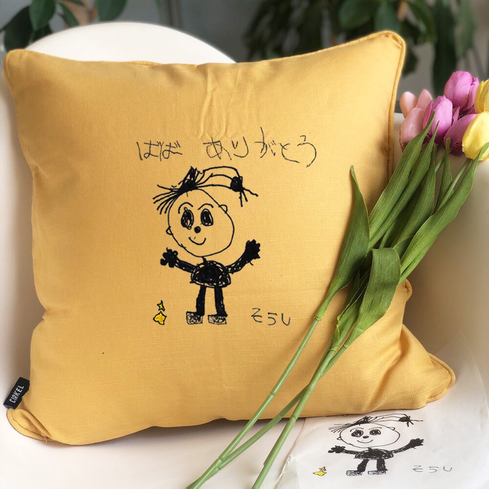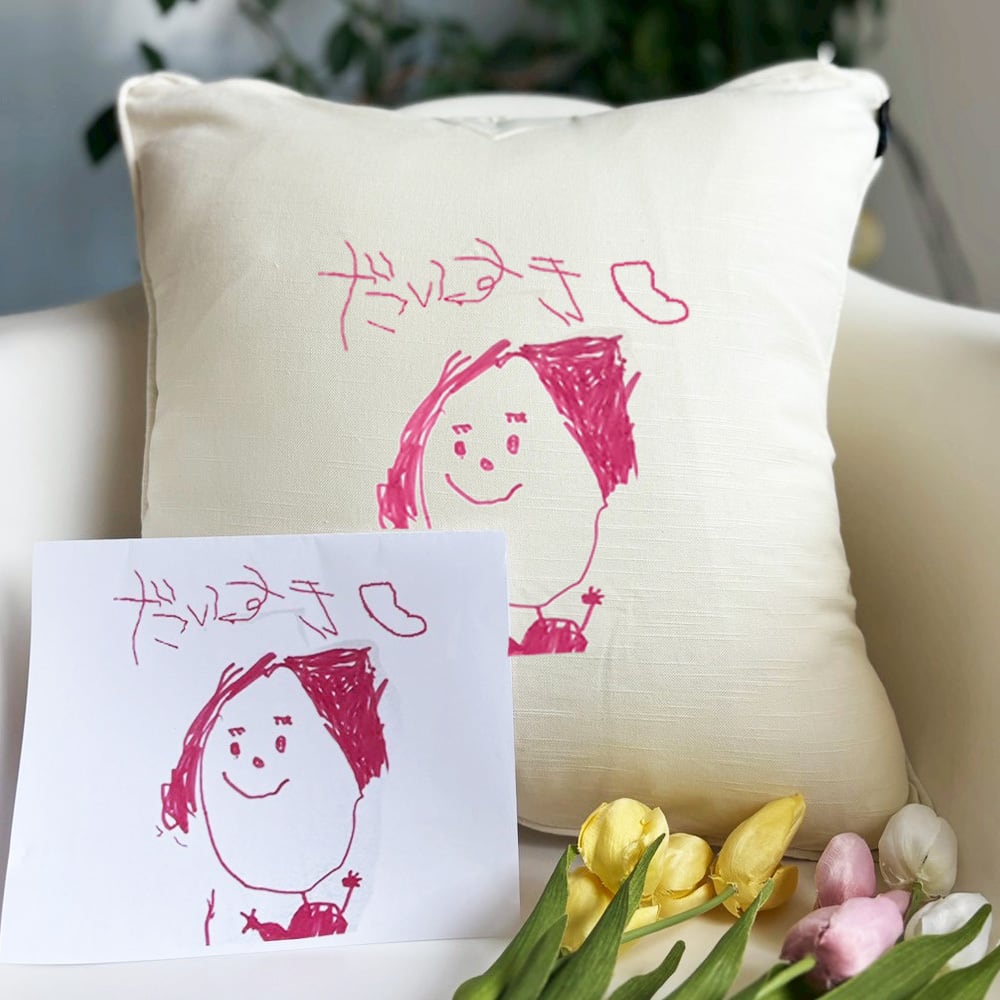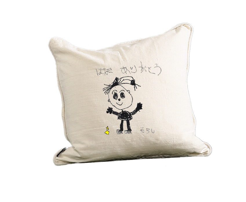 コットン100%使用!子供の絵をプリントしたオーダークッションカバーです☺