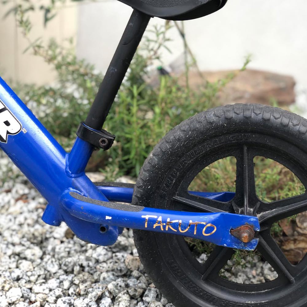 防水ステッカーなので水筒やストライダーや自転車に貼って頂けるのでお子様の持ち物も迷子にならず◎