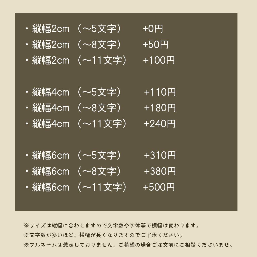 ・オーダーサイズ ( 縦幅2~8㎝以内 / ~11文字まで )