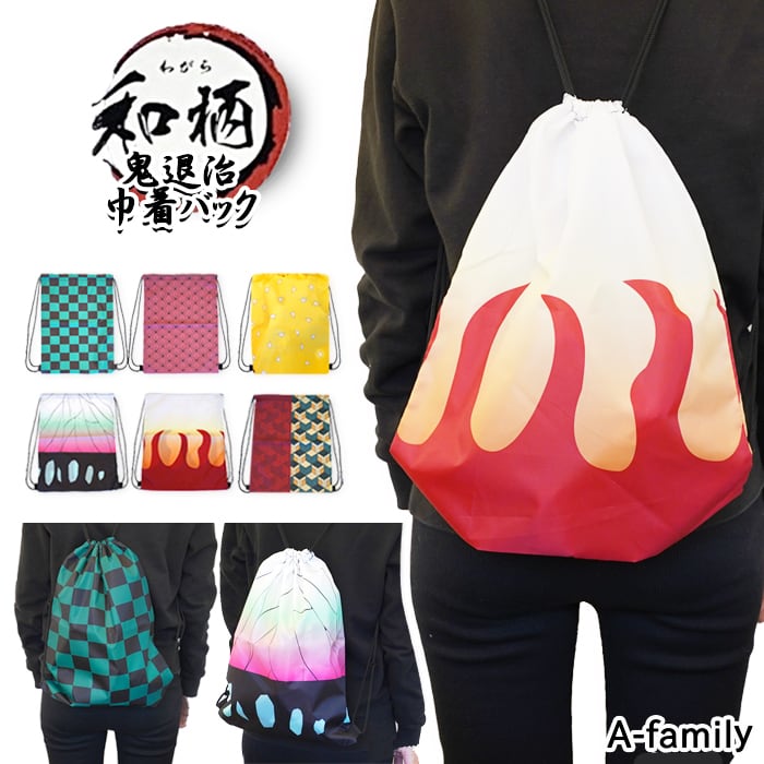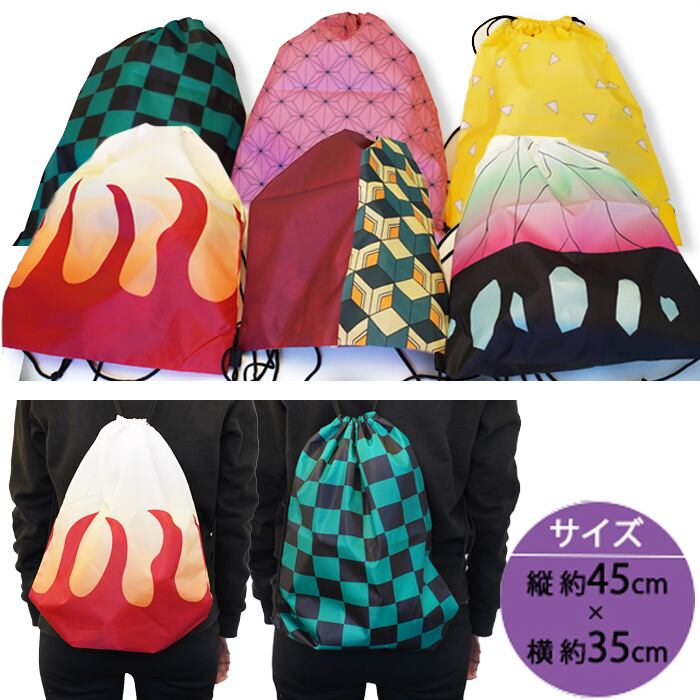 0286 子供用巾着バック 鬼滅の刃風 きめつ きめつのやいば 巾着 バッグ ナップサック こども 洗える 子供 キッズ ジュニア 小学生 キャラクター きめつ 刃 風 鬼滅 映画 炭次郎 禰豆子 ねずこ 胡蝶 たんじろう しのぶ 富岡 ぎゆう 吾妻 ぜんいつ 煉獄 れんごく 柄【送料無料】 | A-family(えぇふぁみりー)