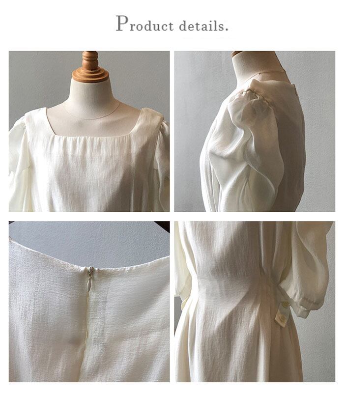 713 ナチュラルかつフェミニンな着こなしが叶うワンピース ワンピース ロングワンピース ロング レディース フェミニン ナチュラル リゾート お出掛け 女子会 デート ランチ ゆるふわ エレガント 上品 五分丈 夏 無地 レディースファッション ホワイト グレ