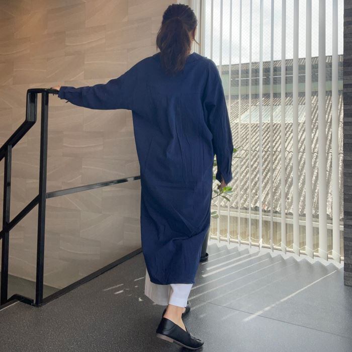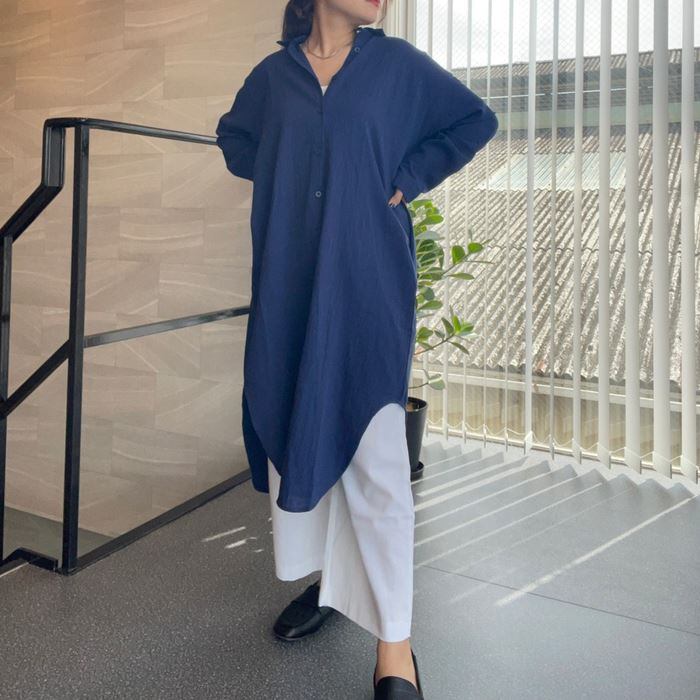 911 シャツワンピース ロングシャツ レディース 大人シャツ 八分袖 膝丈 長袖 Aラインワンピース 前ボタン ゆったり 爽やか カジュアル 体型カバー 白 スカイブルー 青 ブルー 開襟ワンピ 大人のおしゃれ マキシ丈ワンピース ブラウスワンピース きれいめ | A-family(えぇふぁみりー)